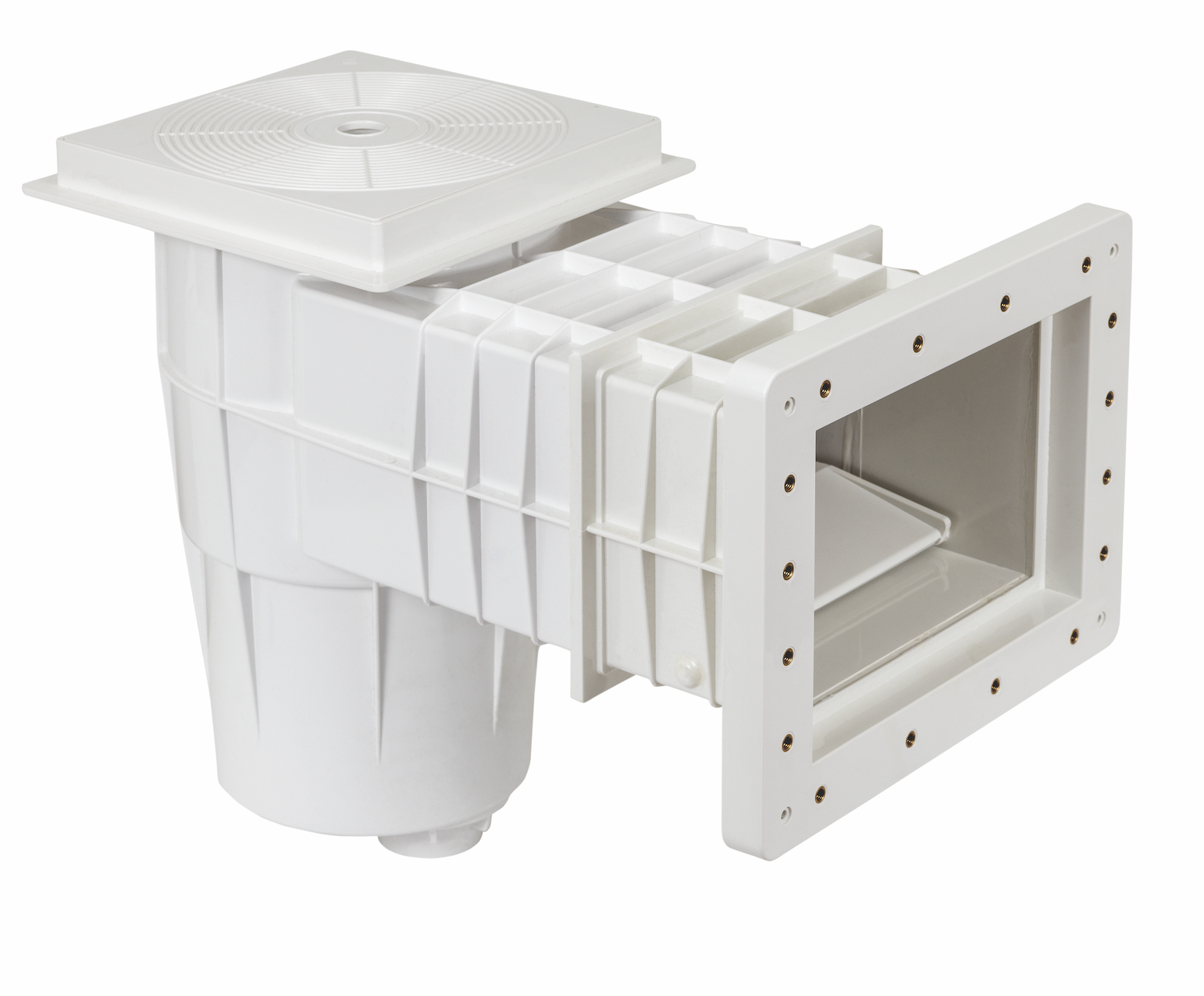 Скиммер Gemas 04211FW - предназначен для забора воды из бассейна и ее подачи в фильтровальную установку любого типа бассейна. Изготовлен из стойкого к УФ-излучению белого ABS-пластика с шумопоглощающей откидной плавающей заслонкой. Оснащён выходом для регулятора слива и механизмом блокировки корзины против противодавления
